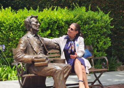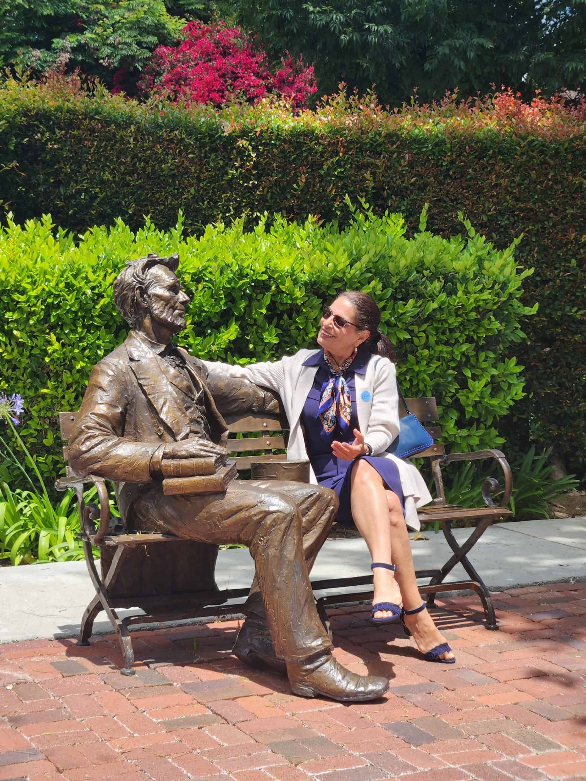- The childhood home with a statue of President Lincoln by the front door.