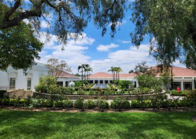 - The spacious entry and rotunda, the reflection pool and gardens